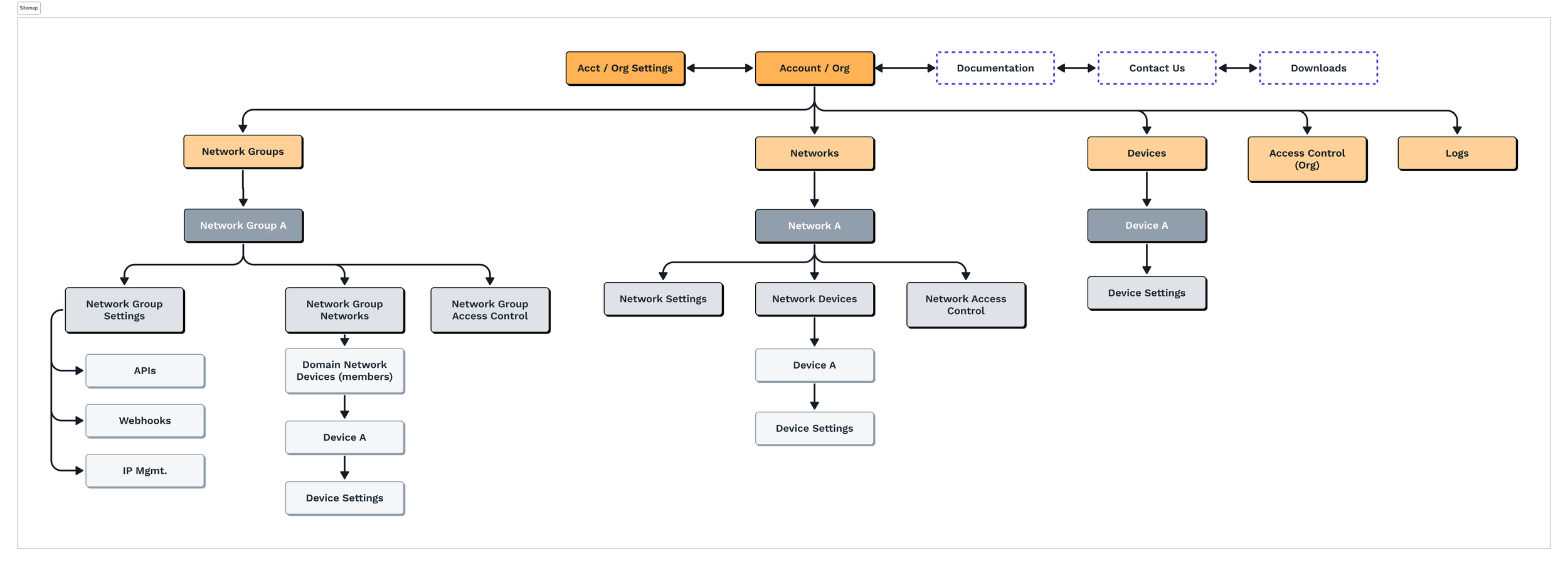 Because networking is so complex, one of the overarching goals for the design was simplicity. This was even more important than usual because we planned on adding in new features like topology maps, performance metrics, and access control. So the challenge became how to add value without clutter and confusion.