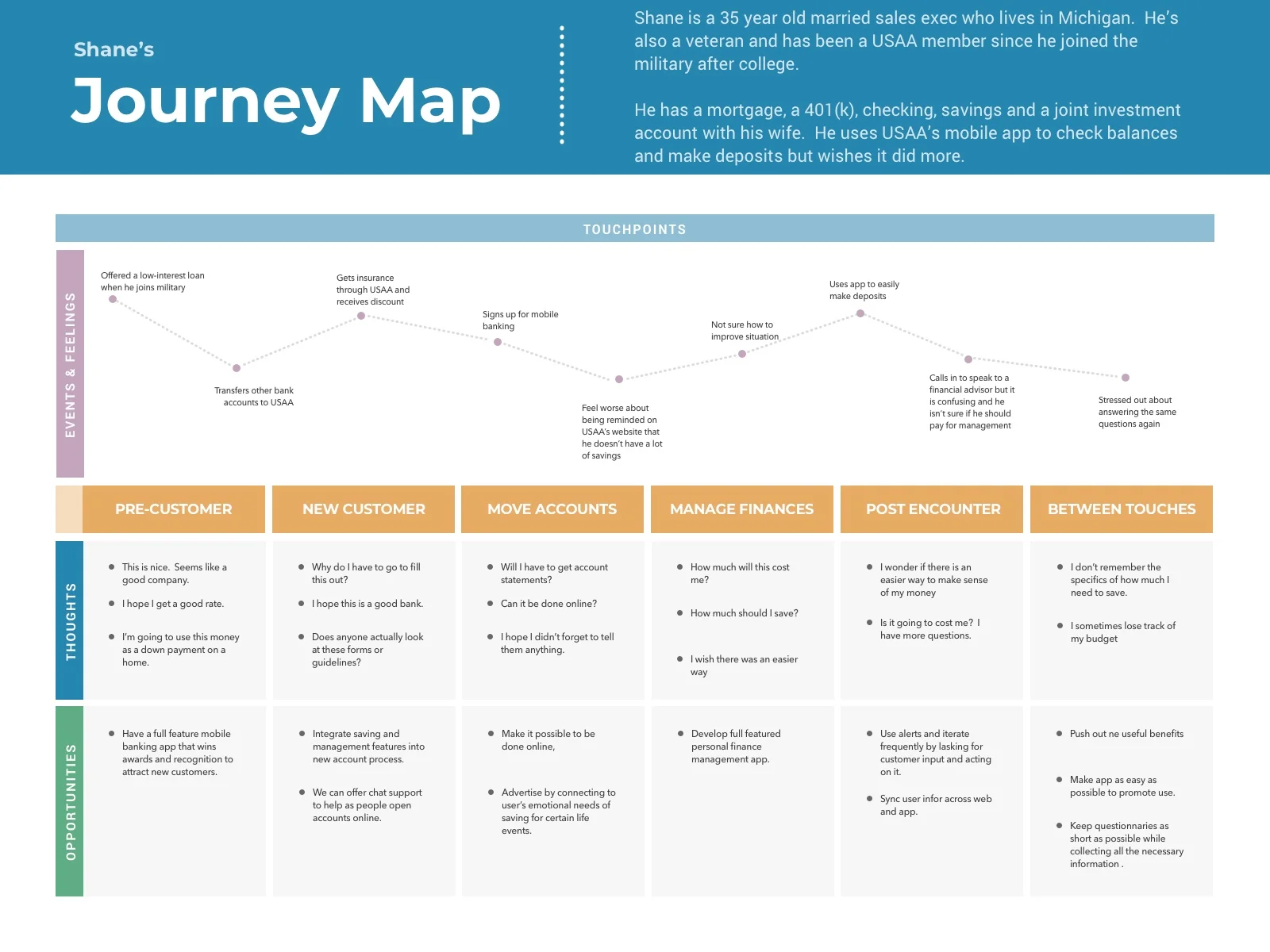 Their current mobile app is very well rated, but very basic in functionality. The features that they are offering focus primarily on spending and making payments. USAA would like to round out their offerings by providing users with personalized features that allow them to manage their personal finances.